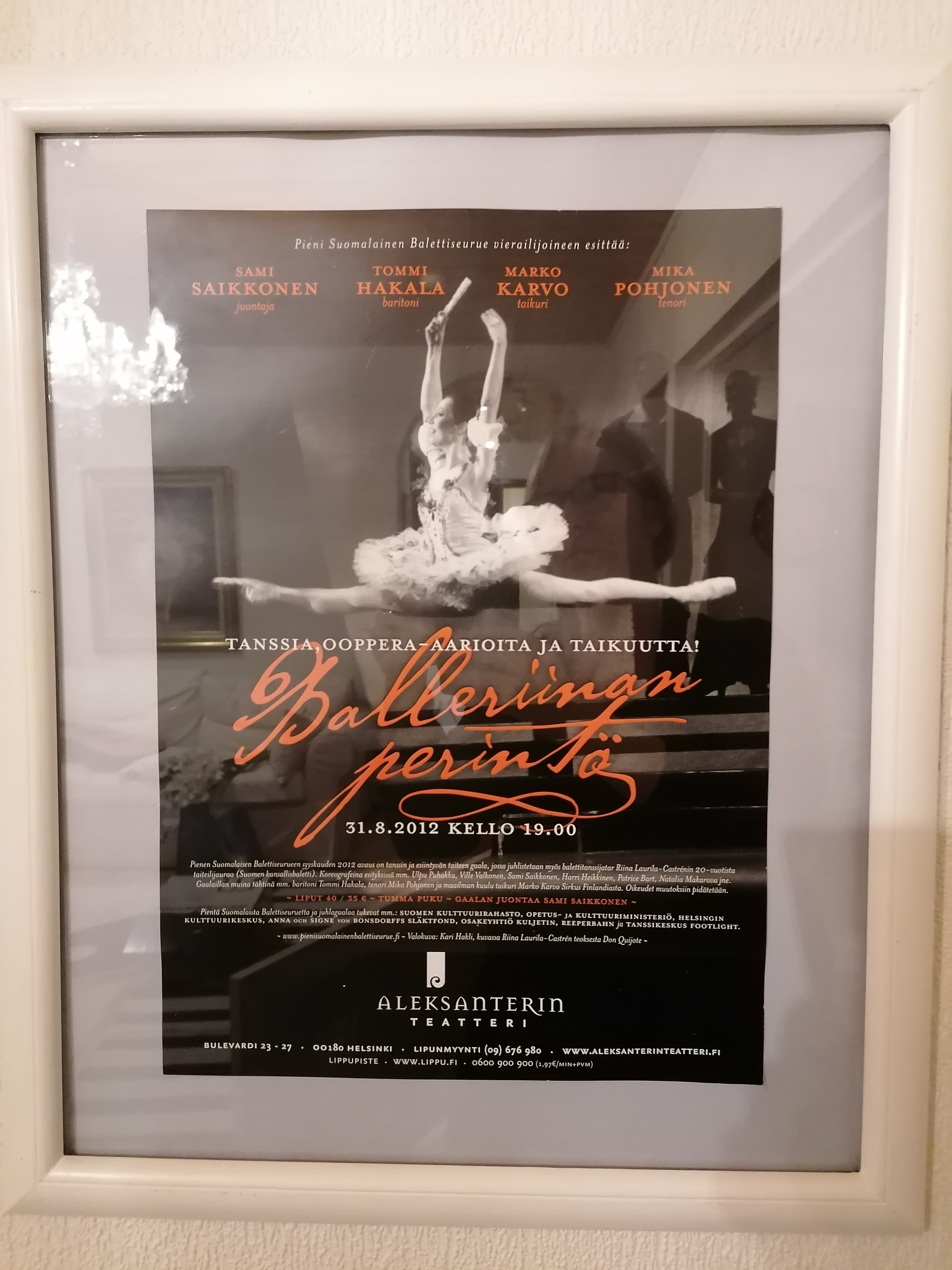 Järjestin juhlanäytöksen 31.8.2012 yhdessä silloisen Pienen suomalaisen balettiseurueen kanssa yhteistyössä (Ryhmän nykyinen nimi on Ballet Finland). Blogissani markkinoitiin 20-vuotis juhlanäytöstäni: Ballerinan perintö -gaalaa. Tämä blogi kannattaa lukea kokonaisuudessaan aloittaen luvusta 1. Scrollaa siis tämän sivun loppuun ja aloita lukunautinto sieltä.